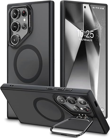 DIZORO TPU Samsung Galaxy S23 Ultra Case Compatible with Wireless Charging,with Camera Stand,Military Grade Drop Tested,Translucent Hard Back Soft Edge Back Cover (Black)